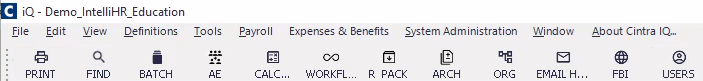The buttons below the menu will change, depending on what area of Cintra iQ you have selected: