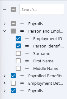 By default, only the most commonly-used sets of columns are displayed in the Column Selector panel. To add further sets of columns, click the More Columns button at the top-right of the report customisation screen.