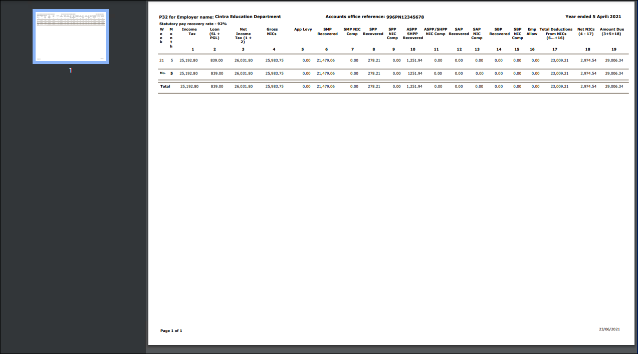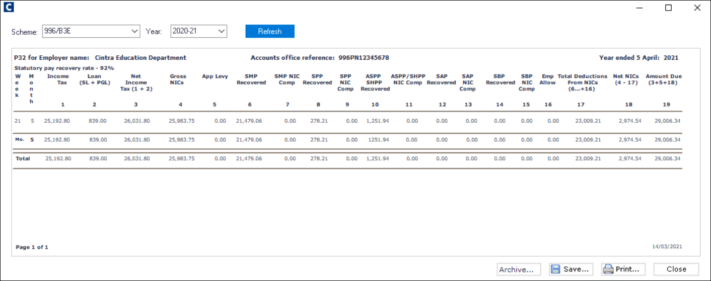 - For each tax scheme selected, click on the Refresh button to see the analysis of payments generated within Cintra iQ.