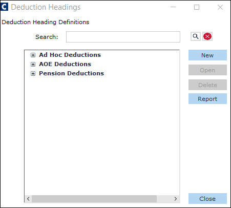 | Pension Deductions | Pension deduction headings can be viewed in the Adjustment Headings form but are created under Benefit Schemes. |
