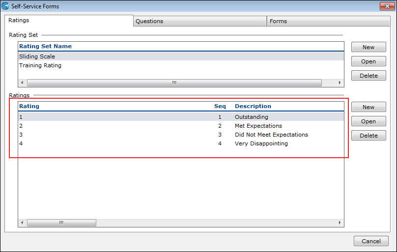 - Go to Cintra iQ: System Administration> Self-Service Forms> Ratings tab.