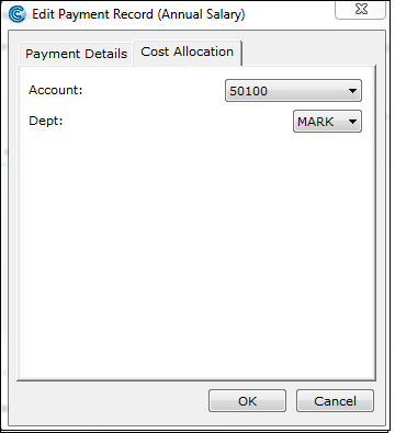 - Click the OK button. The Cost Allocation is applied to the payment record.