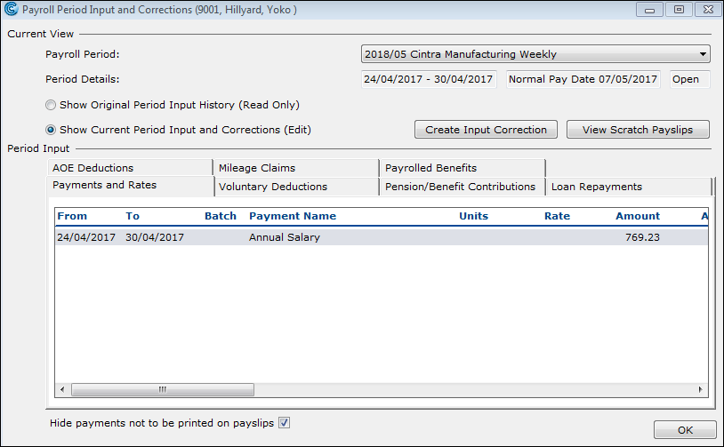 - Navigate to the Payroll Period Input and Corrections window for the employee.