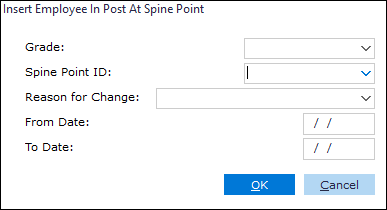 The Insert Employee in Post At Spine Point form ties the Grade and Spine Point to the Post.