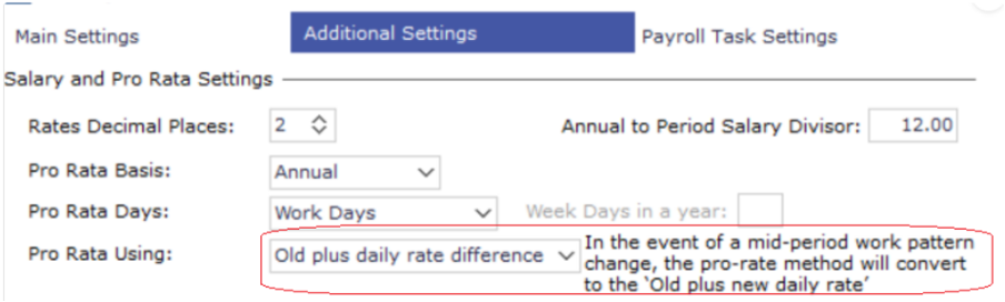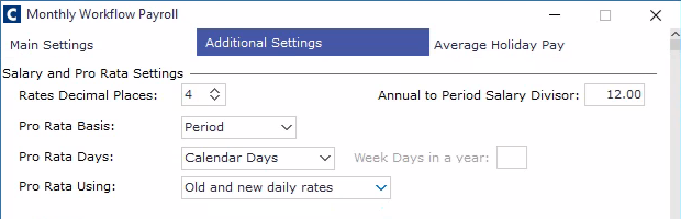 - Click the Additional Settings tab. You can then select the method from the Pro Rate Using drop-down.