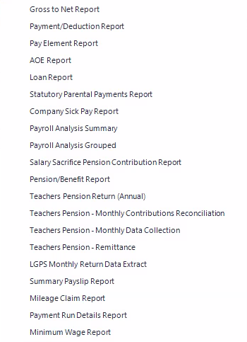 Pension/Benefit Reports can be detailed or shown in an All Pension Scheme Summary report or in an All Benefit Scheme Summary report. Again you can report for a specific period or year-to date.