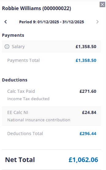 - Starter/leaver: If the employee has left the company, or if they are a new starter in the current period, an icon will appear beside their name.
