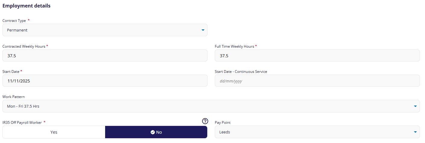 As well as start date and contracted hours, this screen also lets you record when an employee leaves your organisation.
