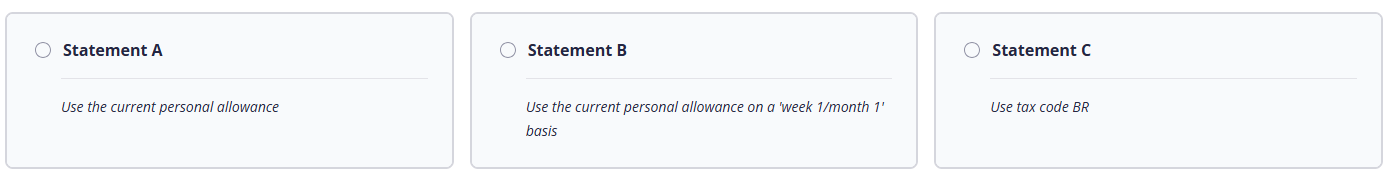 - Statement C: The employee’s earnings in this job should be taxed at the basic rate. No personal allowance is applied, so tax is charged from the first pound they earn. For more information on tax codes, visit the HMRC website.