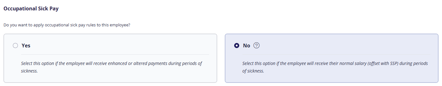 - If you select No, the employee will receive their normal salary, but some of it will be classed as SSP for compliance and payroll purposes.