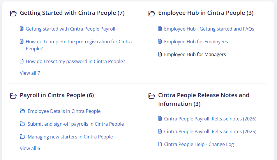 If you're new to Cintra People, these Getting Started articles will explain precisely what Cintra People is, its key benefits to you and your organisation, and how you can access and start using it.